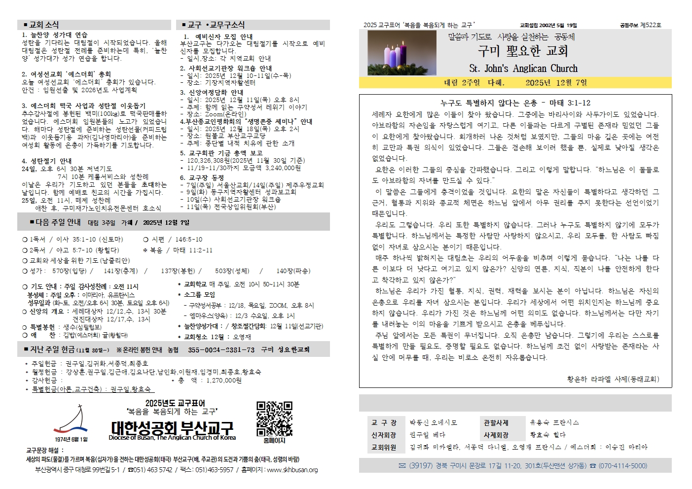 | 성요한교회 대림 4주일(2025. 12. 21)감사성찬례 주보 (0) | 2025.12.22 |